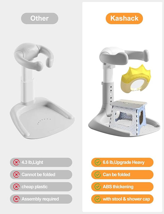 (3 in 1) Baby Shower Stand, Adjustable Baby Bath Stand with Safety Handle,Shower Head Holder for Babies 6-36 Months Baby & Toddlers,Bath Essentials for Infants(Gray White)
