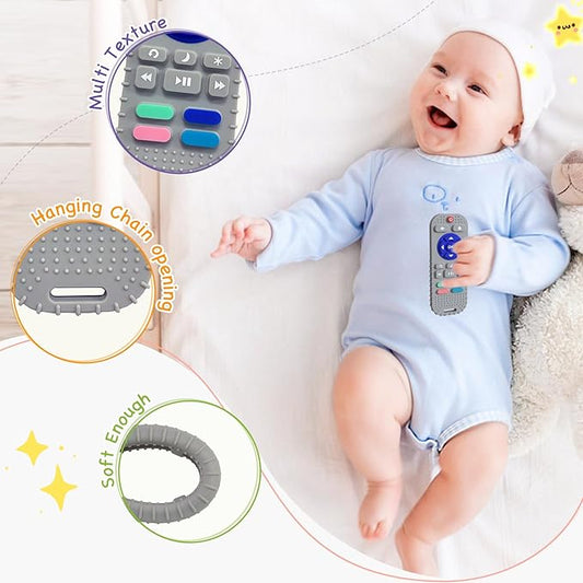 1 Pack Silicone Teethers for 6-12 Months, Teething Toys for 0-6 Months, Remote Teether for Baby, Sensory Toys for Babies, Toddler Infant Gifts