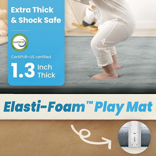 1.3" Thick Baby Play Mat for Floor Playpen, 71x59 Large Foam Tummy Time Mat, Padded Support Soft Plush Nursery Rug for Infant Kids Toddler Crawling Kick Activity (Light Grey)