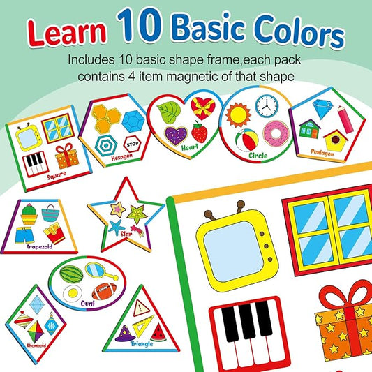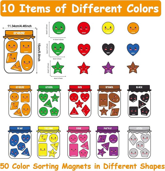 10 Packs Shape & Color Recognition Magnetic Sorting Set for Toddlers Educational Magnet Color Shape Matching Magnet for Kids Preschool Learning Magnets for Refrigerator Whiteboard Classroom Game
