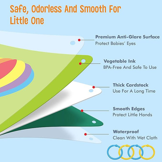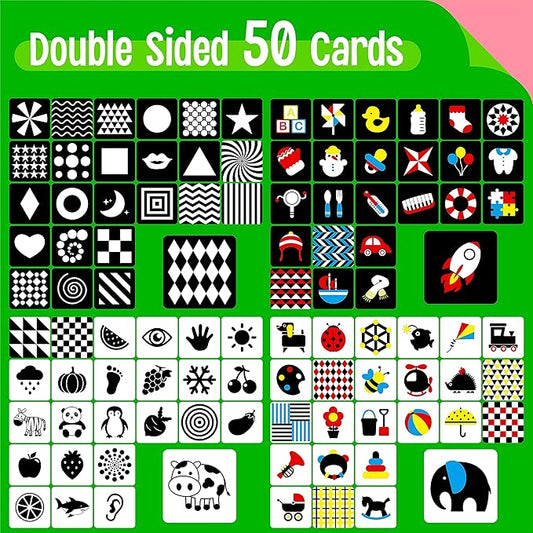 100 Pages Black White Colorful Baby Visual Stimulus Flashcard, 50 PCS High Contrast Baby Flashcards Sensory Toys for Newborn Infant Gift (2 Levels 0-6 Months, 5.5” X 5.5”)
