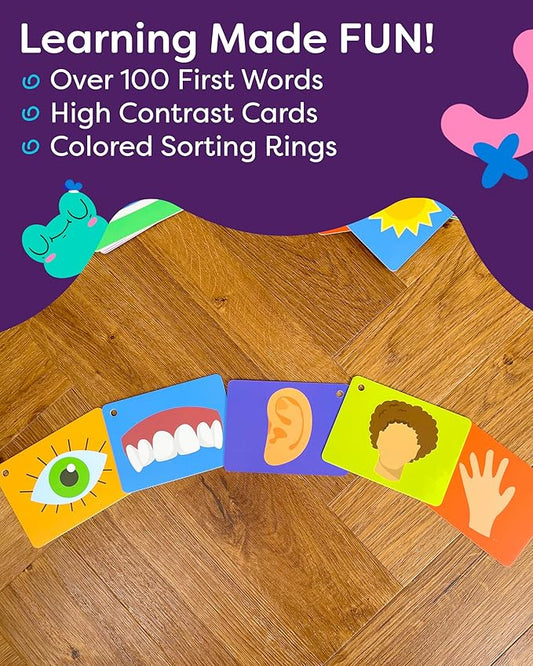 100 Real-Image Flash Cards for Toddlers 1-3 – Large Waterproof Learning Cards, Montessori Preschool Educational Toys for Kids, Durable Flashcards with Pictures and Words (Mom’s Choice Award)