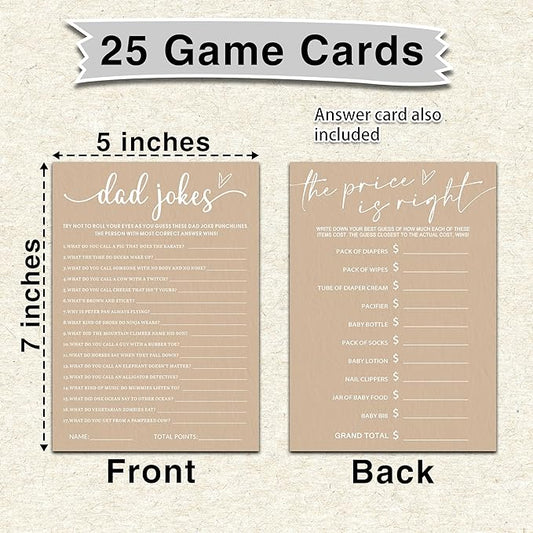 Hilarious Baby Shower Game Cards Ideas, 5" x 7" Double-Sided Baby Shower Games for Girl or Boy, Brown Minimalism Gender Reveal Party Supplies - E09