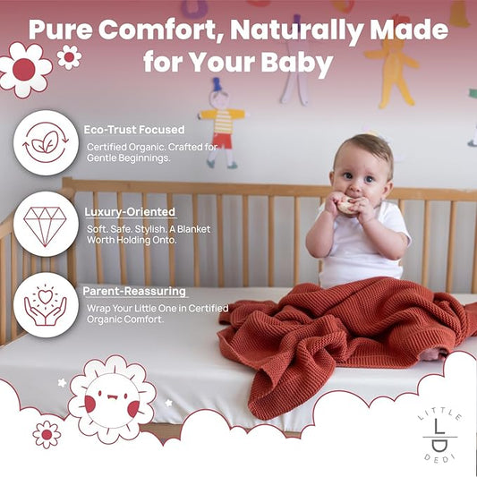 100% Organic Cotton Baby Knitted Blanket with Gift Box - Soft Toddler, Crib, Stroller Blanket - Neutral Swaddle and Receiving Blanket for Newborns, 30"x40", Amberglow