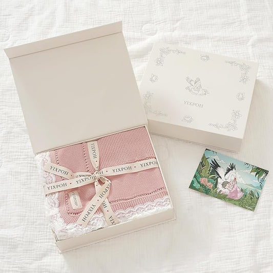100% Organic Cotton Baby Knitted Blanket with Gift Box - Soft Toddler, Crib, Stroller Blanket - Neutral Swaddle and Receiving Blanket for Newborns, 30"x40", Pink
