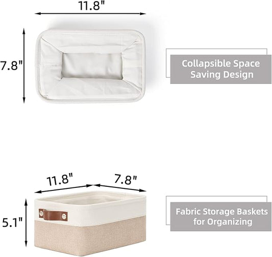HNZIGE Small Fabric Baskets for Organizing(6 pack) Collapsible Storage Baskets for Shelves, Closets, Laundry, Nursery, Decorative Baskets for Gifts Empty (White&Khaki, 11.8" x 7.8" x 5.1")