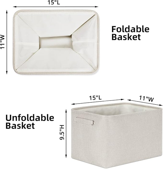 HNZIGE Large Fabric Storage Basket for Shelves, Rectangular Storage Bins Baskets for Storage, Canvas Collapsible Storage Bins with Handles for Organizing Home, Closet(White Beige)