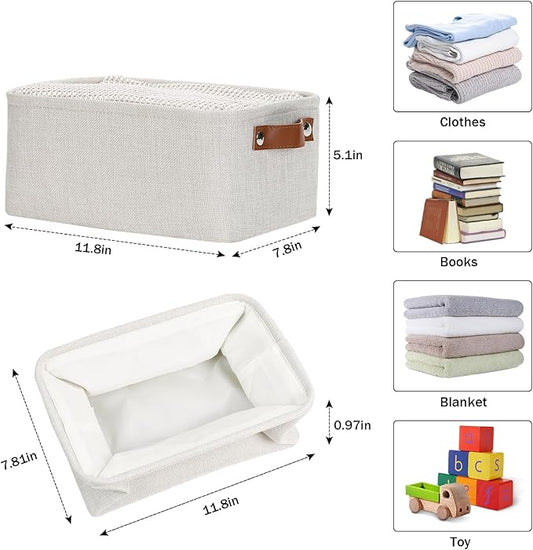 HNZIGE Fabric Storage Baskets for Organizing Small Storage Baskets for Shelf,6 Pack Shelf Baskets for Storage with Leather Handles, Foldable Baskets for Organizing Clothes(Cream 11.8" x 7.8" x 5.1")