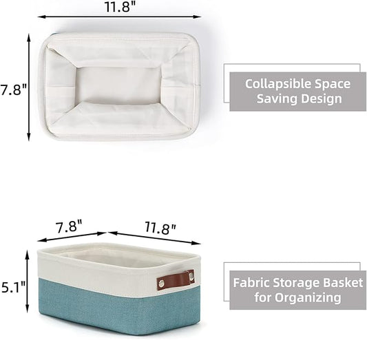 HNZIGE Storage Baskets Bins Set, (6 pack) Small Fabric Baskets for Shelves, Baskets for Gifts Empty with Handles for Organizing Shelf Nursery Home Closet Clothes room(White Teal, 11.8" x 7.8" x 5.1")
