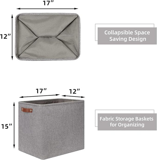 HNZIGE Tall Storage Baskets for Shelves, Rectangular Fabric Organizer with Handles, Decorative Closet Storage Bins (Grey)