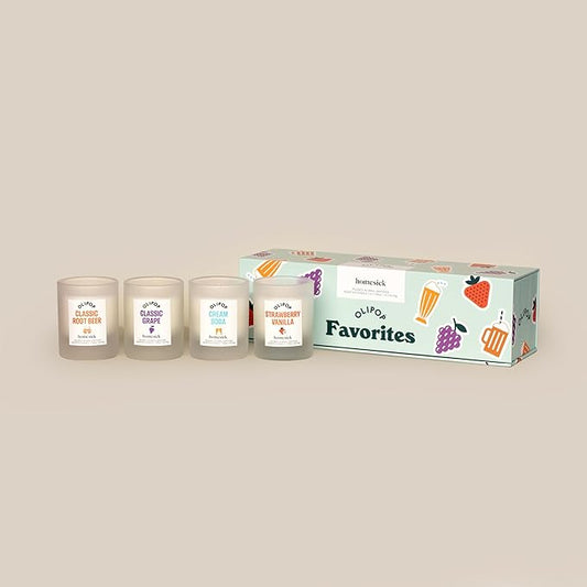 Homesick – Olipop Candle Variety 4-Pack – 1.85 oz Each Premium Scented Candles with Organic Cotton Wick, Natural Soy Wax Candle in Reusable Glass Jars, Wedding & Engagement Gifts for Couples