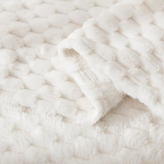 HOMRITAR Flannel Fleece Fluffy Fuzzy Blanket for Baby 3D Jacquard Soft Warm Plush Bed Blankets for Home Decor, Toddler Infant or Newborn Receiving Blanket (30 x 40 Inch, Cream)