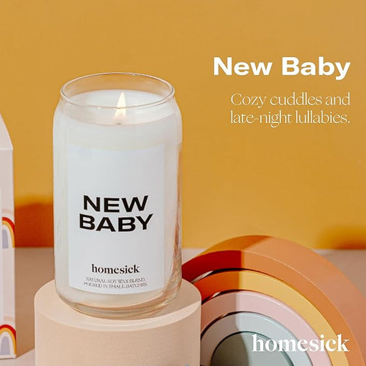 Homesick Scented Candles for Home (New Baby) - 13.75 oz Long-Lasting Natural Soy Wax Blend Jar Candle Gifts & Couples Baby Shower Favors, 60-80 Hours Burn Time - Notes of Geranium & Vanilla