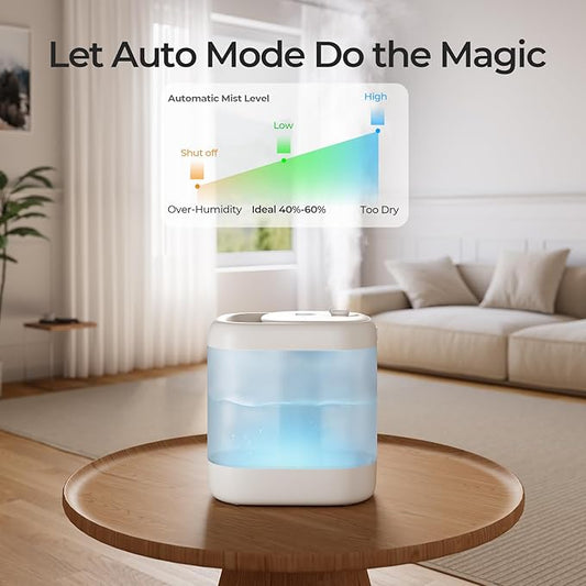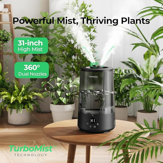 Homvana Humidifiers for Bedroom, 5L Super Easy to Clean Top Fill Auto Adapt Cool Mist Humidifier for Bedroom Plants Baby Kids for Home (Never Leaking Design), Quiet 40H Runtime, Essential Oil Diffuser