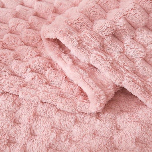 HOMRITAR Baby Blanket for Boy Girls 3D Jacquard Fluffy Toddler Blankets Soft Warm Cozy Flannel Fleece Warm Bed Blanket Nursery, Stroller Newborn Infant Bedding, 30 x 40 Inch (Light Pink)