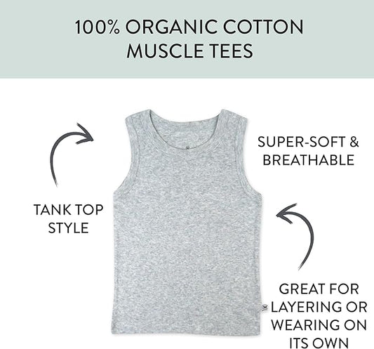 HonestBaby Sleeveless Muscle T-Shirts 100% Organic Cotton for Infant Baby and Toddler Boys, Girls