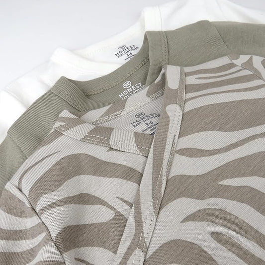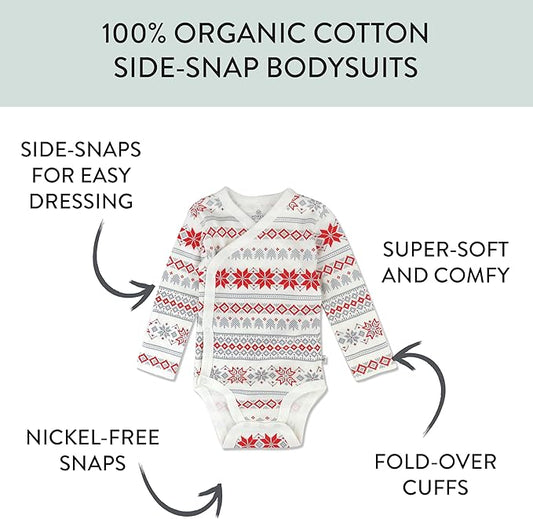 HonestBaby unisex-baby 3-pack Long Sleeve Side-snap Kimono Bodysuits Organic Cotton for Infant Baby Boys, Girls, Unisex
