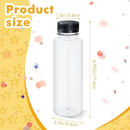Honeydak 24 Pcs Empty Sensory Bottles Bulk with Black Lids 12 oz / 350 ml Clear Plastic Reusable Leakproof Juice Bottles Drink Container for Sensory Crafts Handmade Beverages Storage (Cylindrical)