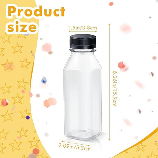 Honeydak 24 Pcs Empty Sensory Bottles Bulk with Black Lids 10 oz / 300 ml Clear Plastic Reusable Leakproof Juice Bottles Drink Container for Sensory Crafts Handmade Beverages Storage (Square)