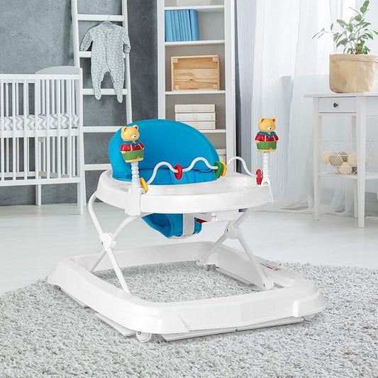 HONEY JOY Baby Walker, Foldable Push Walker Toy-Seated & Walk-Behind with Wheels, Interactive Piano & Pedants, Adjustable Height & & Speed, Padded Seat, Baby Walkers for Boys Girls(Blue)