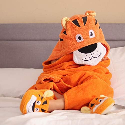 Hooded Baby Towel for Kids 2-8 | Large 100% Cotton Baby Towel for Girls or Boys in Orange | Unisex Cute Tiger Bath Towels for Babies and Toddlers
