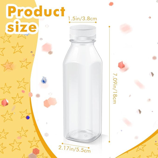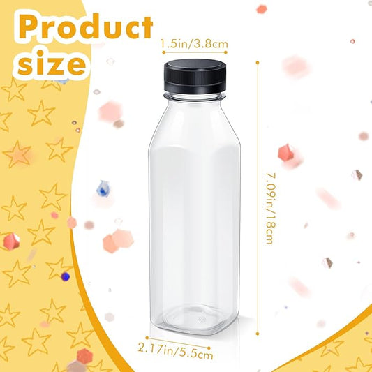 Honeydak 36 Pcs Empty Sensory Bottles Bulk with Black Lids 12 oz / 350 ml Clear Plastic Reusable Leakproof Juice Bottles Drink Container for Sensory Crafts Handmade Beverages Storage (Square)