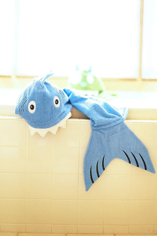 Hooded Baby Towel for Kids 2-8 | Large 100% Cotton Baby Shark Towel for Boys or Girls in Blue | Unisex Cute Shark Bath Towels for Babies and Toddlers
