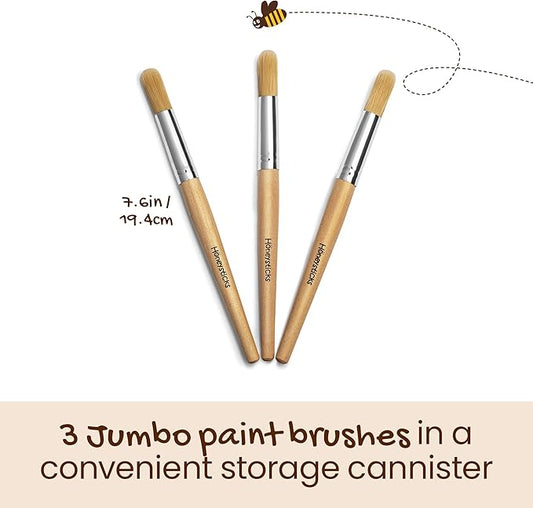 Honeysticks Jumbo Paint Brush Set - 3 Pack. Jumbo Paint Brushes for Kids with a Large Wood Handle for Easy Grip. Perfect for Toddler and Preschool Painting. Handy Storage Container. Vegan.
