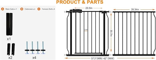 HOOEN 30" Tall Extra Wide Baby Gate for Stairs Doorways 57.5 to 62 Inch Large Long Dog Gates Tension Baby Gate Walk Through Child Gates for Kids or Pets Indoor Safety Gates