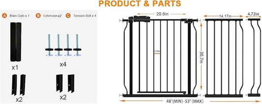 HOOEN 30" Tall Extra Wide Baby Gates for Doorways Stairs 48 to 53 Inch Long Large Pressure Mounted Dog Gates for The House Walk Through Gates Indoor Safety Child Gates for Kids or Pets