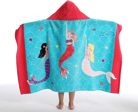 Hooded Towel for Kids, 100% Cotton Soft and Absorbent, Pool Bath Beach Swim Towel Wrap, Bathrobe Coverups for Girls and Boys, Extra Large:30"×50"(Mermaid)