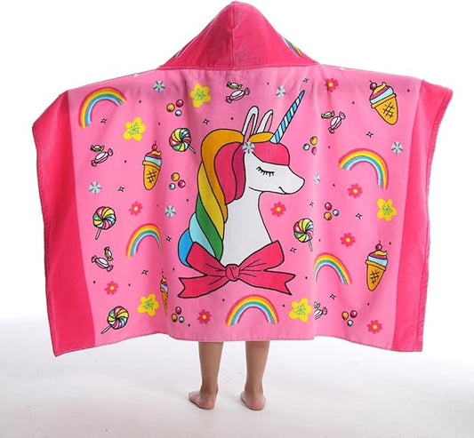 Hooded Towel for Kids, 100% Cotton Soft and Absorbent, Pool Bath Beach Swim Towel Wrap, Bathrobe Coverups for Girls and Boys, Extra Large:30"×50"(Unicorn)