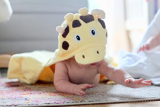 Hooded Baby Towel for Kids 2-8 | Large 100% Cotton Baby Towel for Girls or Boys | Unisex Cute Giraffe Bath Towels for Babies and Toddlers in Yellow