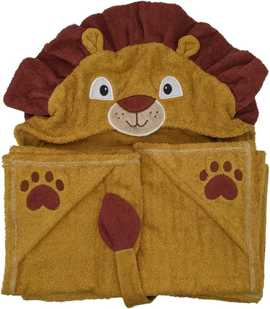 Hooded Baby Towel for Kids 2-8 | Large 100% Cotton Baby Towel for Girls or Boys | Cute Lion Bath Towels for Babies and Toddlers in Gold and Red Russet