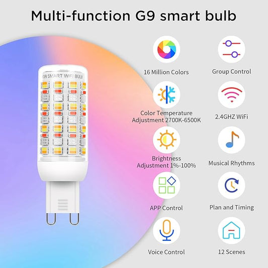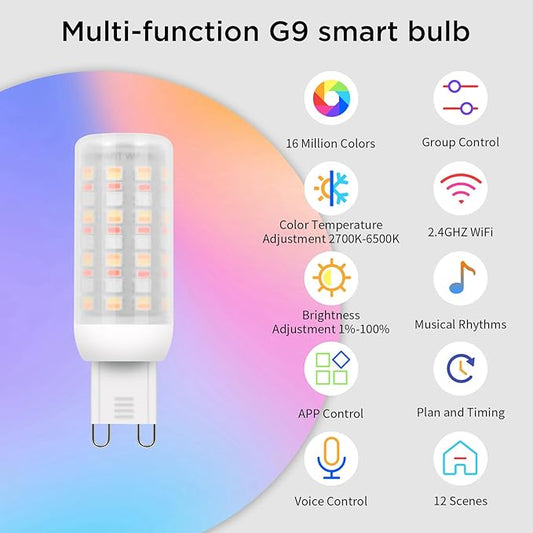 I-SHUNFA Wi-Fi RGBCW Smart G9 LED Bulbs,Compatible with Alexa/Google Home,Multicolour Dimmable,2700K-6500K,4W,400LM AC 120V,Brightness Adjustable 1%-100%,with Musical Rhythm LED Light Bulb,2 Pack