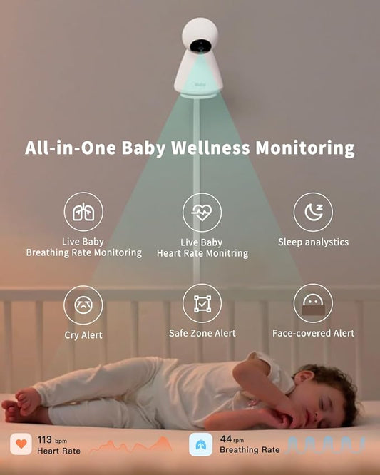 iBaby i20 Smart Baby Monitor & Wall Mount - 1080P Video Camera, Contactless, Monitor Heart Rate, Breathing & Sleep,Sound Machine, No Subscription, 2-Way Audio, Cry & Safety Alerts, Night Vision