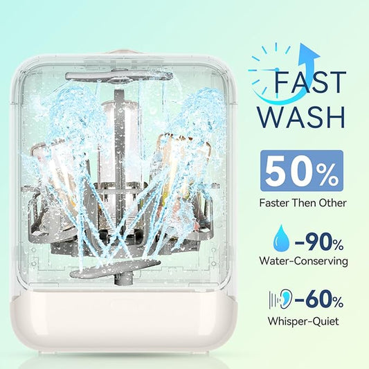 ICUIRE Baby Bottle Washer and Sterilizer and Dryer, Newborn Essential for Parents One-Hand Operation, 4 Sterilize Modes for Baby Stuff, 3.2L Water Tank for Cleaning Bottles, Pump Part &Pacifiers&Bowl