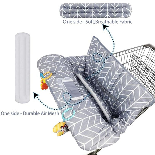 ICOPUCA Shopping Cart Cover for Baby, 2 in 1 cart Cover for Babies N high Chair Cover, Padded Grocery cart seat Cover for Baby Girl boy, with Extra Detachable Cushion, Grey;