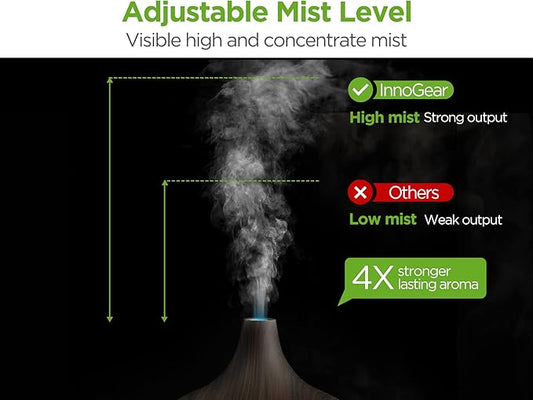 InnoGear Aromatherapy Diffuser & 10 Essential Oils Set, 400ml Diffuser Ultrasonic Diffuser Cool Mist Humidifier with 4 Timers 7 Colors Light Waterless Auto Off for Large Room Office, Dark Wood Grain