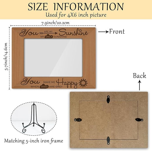 Inspirational Picture Frame, Wooden Photo Frame with Stand, You are My Sunshine - Birthday Gifts for Women Mom Wife Sister Bestie, Home Office Desk Decor Photo Frame Tabletop Display -xk35