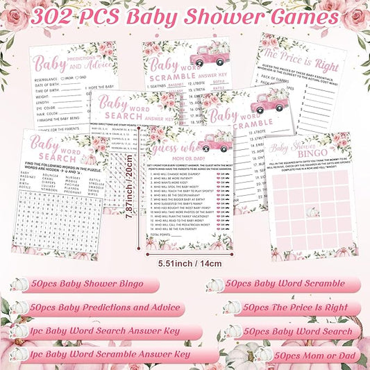 Jetec 302 Pcs Pink Pumpkin Theme Baby Shower Games, 6 Games, 50 Sheets Each, Shower Party Bingo, Word Scramble, Baby Word Search, Predictions and Advice, the Price Is Right, Guess Who