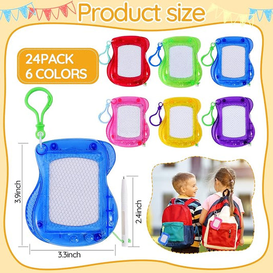Jeffbaubl 24Pcs Mini Magnetic Drawing Board for Kids,Backpack Keychain Clip Doodle Boards,Small Erasable Doodle Sketch Writing Pad for Birthday Party Favors,Goodie Bag Filler,Classroom Prizes 6 Colors