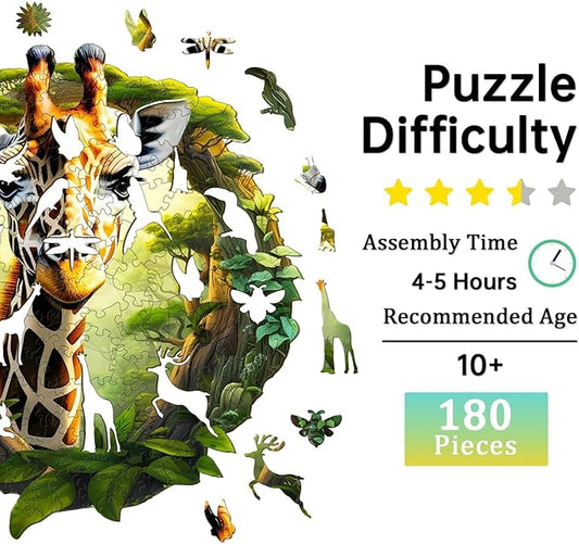 Jigfoxy Wooden Puzzles for Adults, Giraffe Wood Puzzles Adult, Unique Animal Shape Wooden Jigsaw Puzzles for Adults, Birthday Gifts for Puzzle Lovers, Family, Friend (M-11.4 * 10.6in-180pcs)