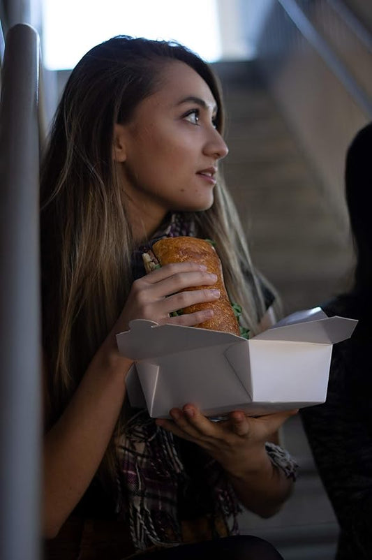 Karat FP-FTG30W 30 fl.oz. 4.3" x 3.5" x 2.4" Fold-to-Go Box #1,White (Pack of 450)