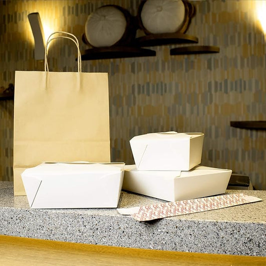 Karat Paper To Go Boxes [48 oz - 300 ct] Leak-Resistant, Microwavable, Heavy-Duty Take Out Boxes | Grease Resistant & Stackable | #8 Kraft Brown