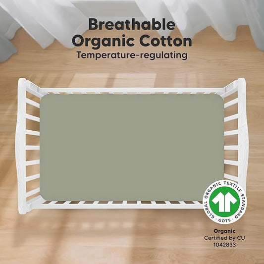 KeaBabies 2-Pack Organic Crib Sheets for Boys, Girls - 52x28 Fitted Crib Mattress Sheet Neutral, Breathable Jersey Cotton Cover for Baby Bed, Toddler Mattress, Soft & Cute Prints (Herb)