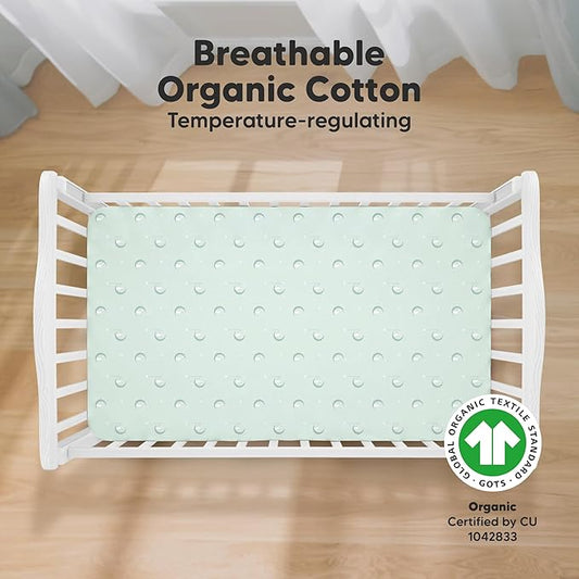 KeaBabies 2-Pack Organic Crib Sheets for Boys, Girls - 52x28 Fitted Crib Mattress Sheet Neutral, Breathable Jersey Cotton Cover for Baby Bed, Toddler Mattress, Soft & Cute Prints (Lune Mystic)