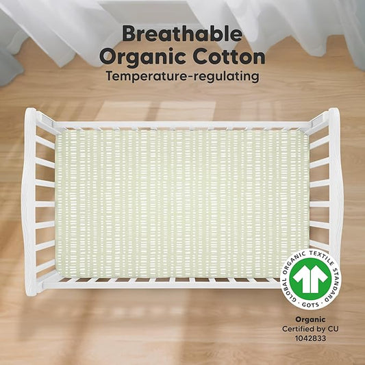 KeaBabies 2-Pack Organic Crib Sheets for Boys, Girls - 52x28 Fitted Crib Mattress Sheet Neutral, Breathable Jersey Cotton Cover for Baby Bed, Toddler Mattress, Soft & Cute Prints (Lichen)