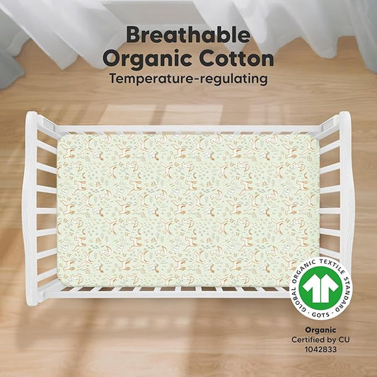 KeaBabies 2-Pack Organic Crib Sheets for Boys, Girls - 52x28 Fitted Crib Mattress Sheet Neutral, Breathable Jersey Cotton Cover for Baby Bed, Toddler Mattress, Soft & Cute Prints (Foxtrot)