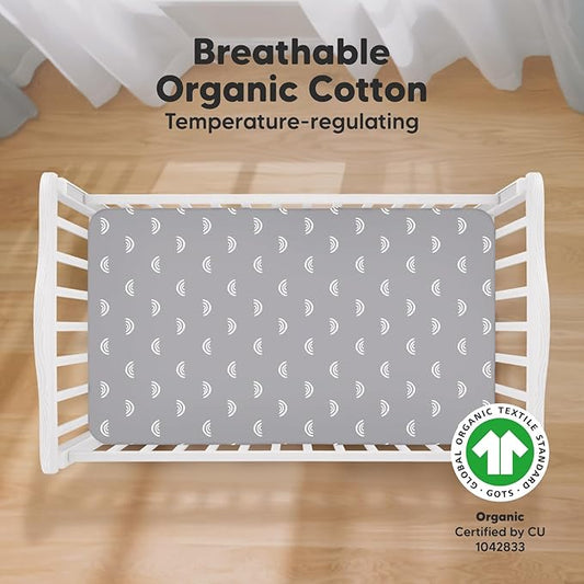 KeaBabies 2-Pack Organic Crib Sheets for Boys, Girls - 52x28 Fitted Crib Mattress Sheet Neutral, Breathable Jersey Cotton Cover for Baby Bed, Toddler Mattress, Soft & Cute Prints (Rainbow)